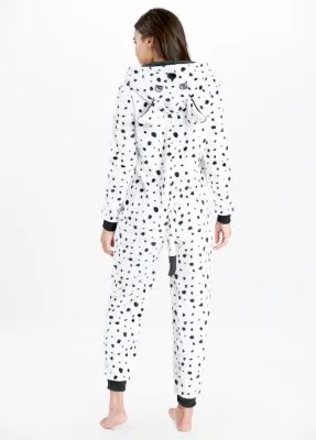 Deze Dalmatiër Onesie is gemaakt van een witte fleece stof met zwarte stippen. De onesie heeft een capuchon met ogen, oren en neus. Dit model hondenonesie sluit met een knoopsluiting aan de voorkant. De pijpen en mouwen zijn afgewerkt met een zwarte elastische band waardoor deze altijd goed vallen. Aan de achterkant van de onesie is een horizontale rits verwerkt zodat ook de toiletbezoekjes comfortabel blijven. P.S. Wist je dat deze onesie van oorsprong een "Kigurumi" heet? Materiaal: Fleece Lengte: De maten zijn overzichtelijk op lichaamslengte gesorteerd. Beschikbaar voor iedereen met een lengte van 150CM tot 185CM