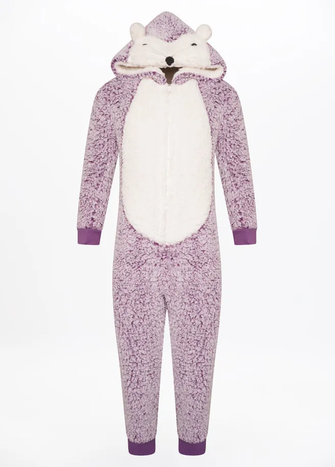Deze Egel Onesie voor kinderen is gemaakt van een goede kwaliteit superzachte lila fleecestof met een wit vlak op de buik. De Egelonesie heeft een capuchon met daarop het het gezicht van de egel, compleet met oren, ogen en een snuitje. Deze onesie sluit met een rits aan de voorkant. De mouwen en pijpen zijn afgewerkt met een elastische band waardoor deze altijd goed vallen. Hoe kies je de juiste maat?: Tel voor de groei 6cm op bij de lengte (van top tot teen). Raadpleeg de > Maatrichtlijn hieronder. Juiste maat niet beschikbaar? > Gebruik ons maatfilter en verken een simpel overzicht van alle beschikbare modellen in de juiste maat. Geef voor kids in het filter de "lichaamslengte + 6cm op de groei" op.